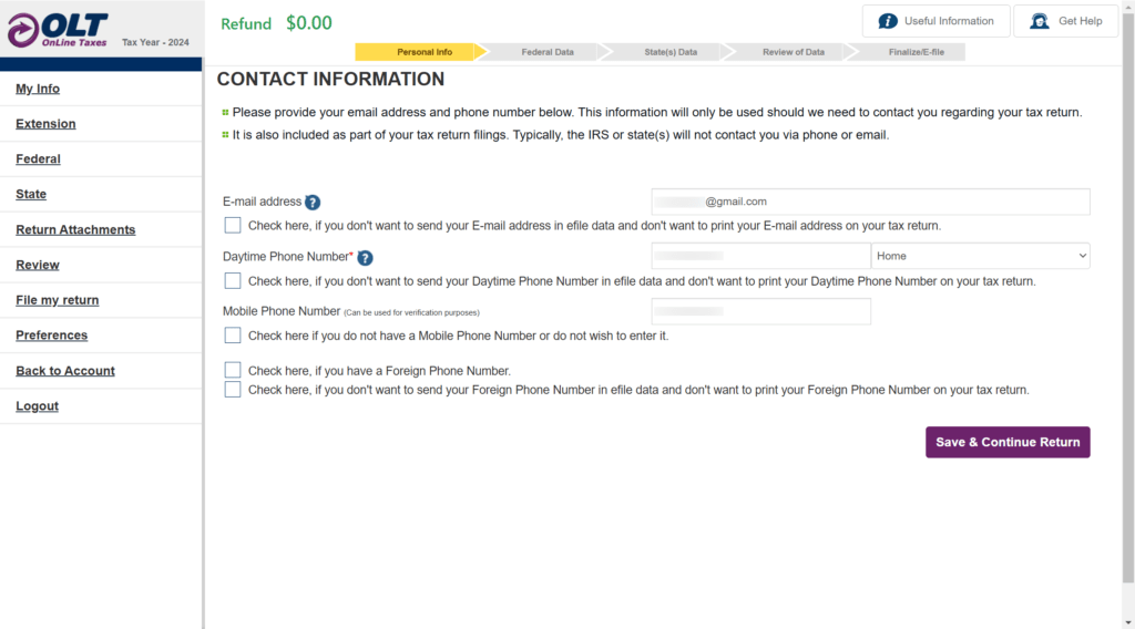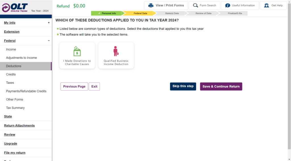 成功进入OLT主页,点击“Start my 2024 return”,正式进入申报流程