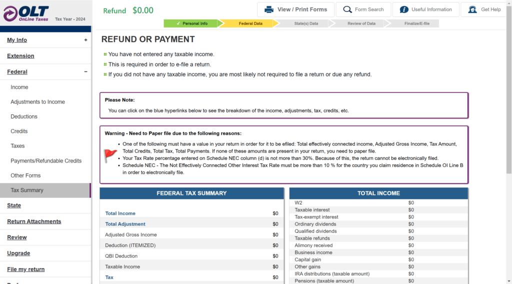 上面的情况结合了1099-DIV,如果只有1099-INT的话,把1099-INT的信息全部删除,税额就变成了0,仍然无法在线申报怎么办?