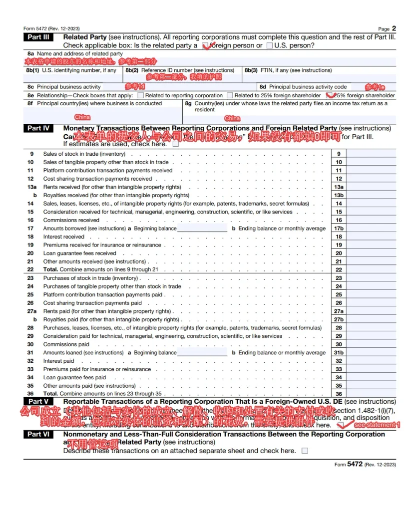 表格 5472 说明 (01/2024) |美国国税局 (irs.gov)