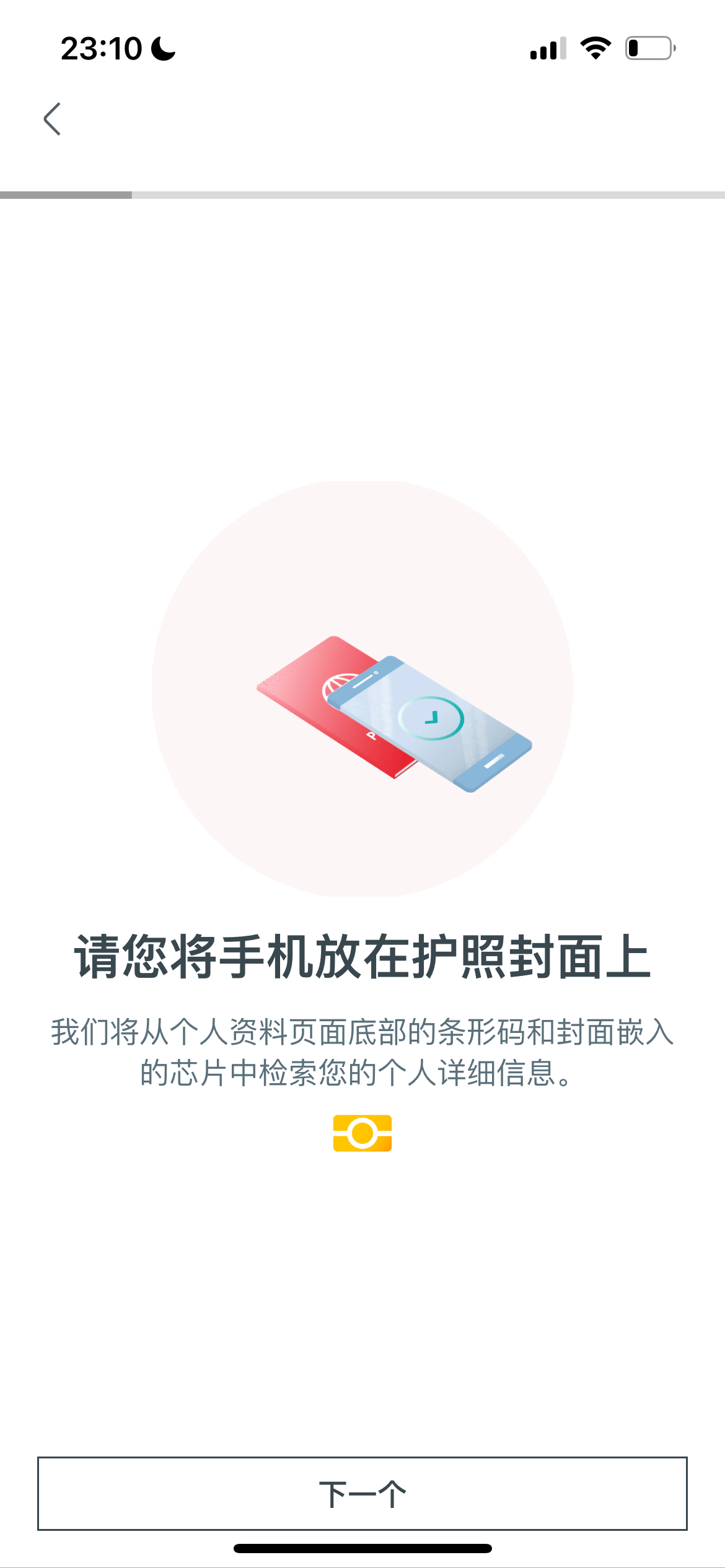 将手机放在护照封面上,读取 NFC 信息。NFC 也有可能出现扫描失败的情况: